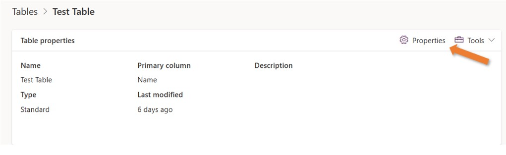 Step 1: Since we’re already making an HTTP call for the bulk update, we might as well get the items we want to update using an HTTP call. We can make a basic call to get rows in a Dataverse table, even though the List rows action would do the same thing. First, we need the logical name of the table you want to update. To get this, find your table in Dataverse and click on Properties. In the pane that opens up, you can copy the logical name of your table: