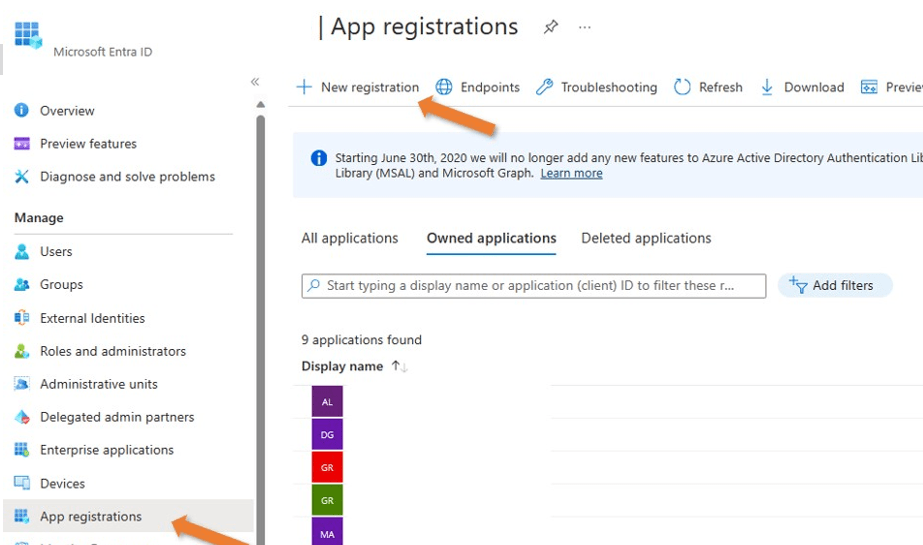 Step 1: Visit Microsoft Entra ID. Click on App registrations on the left pane and select + New registration at the top of the screen.