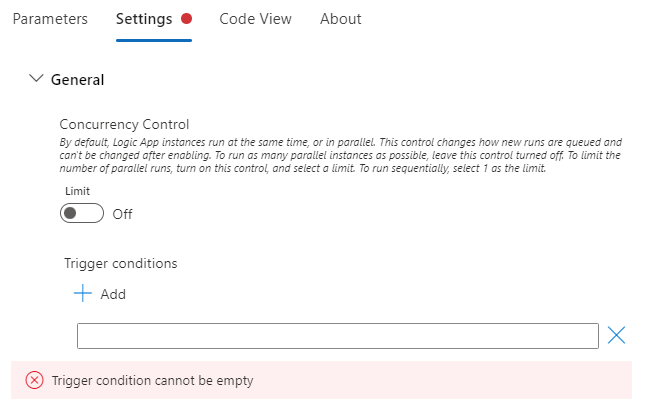 If you click on “Settings” you will see “+ Add” under the Trigger conditions section. If you click that button, a blank field shows up. If you’ve never written one of these things, they can be a little tricky and you don’t get a lot of information on this screen: