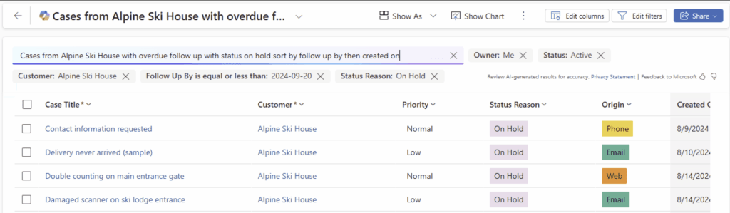 Smart Grids are now in public preview in model driven views, allowing users to find, filter, and sort their data quickly with natural language, bypassing complicated advanced filters. The feature leverages AI to make grid views a seamless interface for instant answers, finding records and initiating actions on your data, streamlining data management and improving user experience.